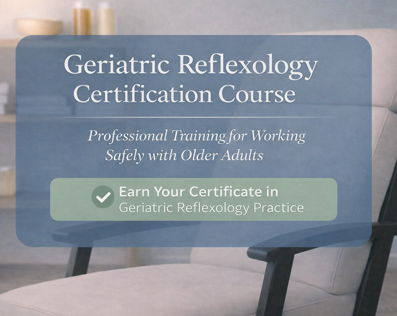The Geriatric Reflexology Certification Course is designed to help reflexologists confidently and safely work with older clients. This course moves beyond routine techniques, providing a structured approach to adapting sessions based on age-related changes, client comfort, and individual needs.